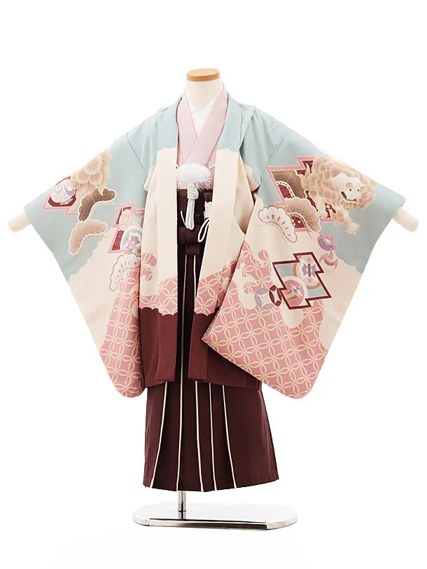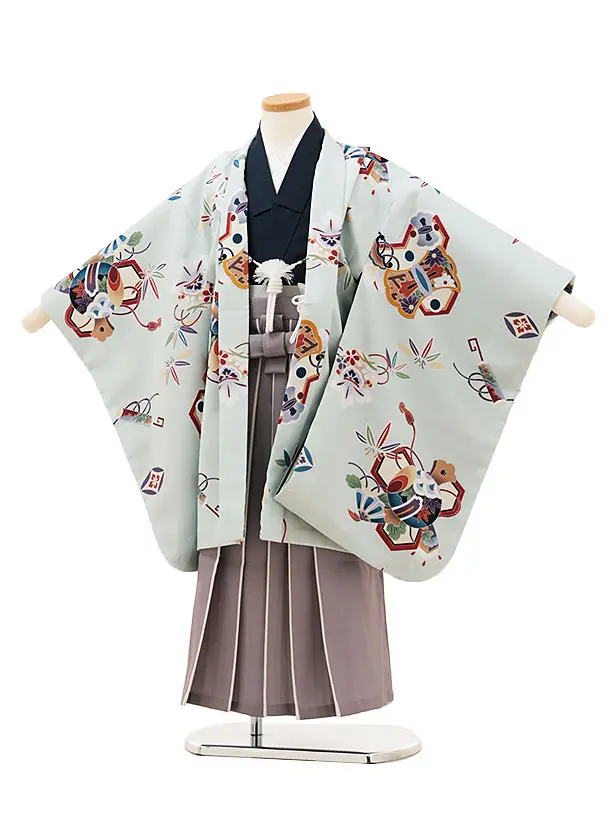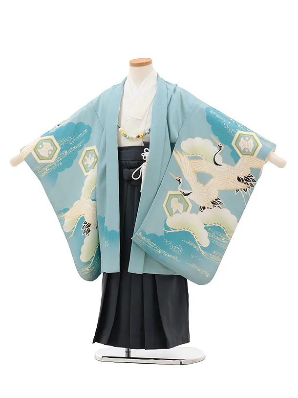 七五三レンタル(5歳男袴)X257ペールブルー吉祥文様xグレー