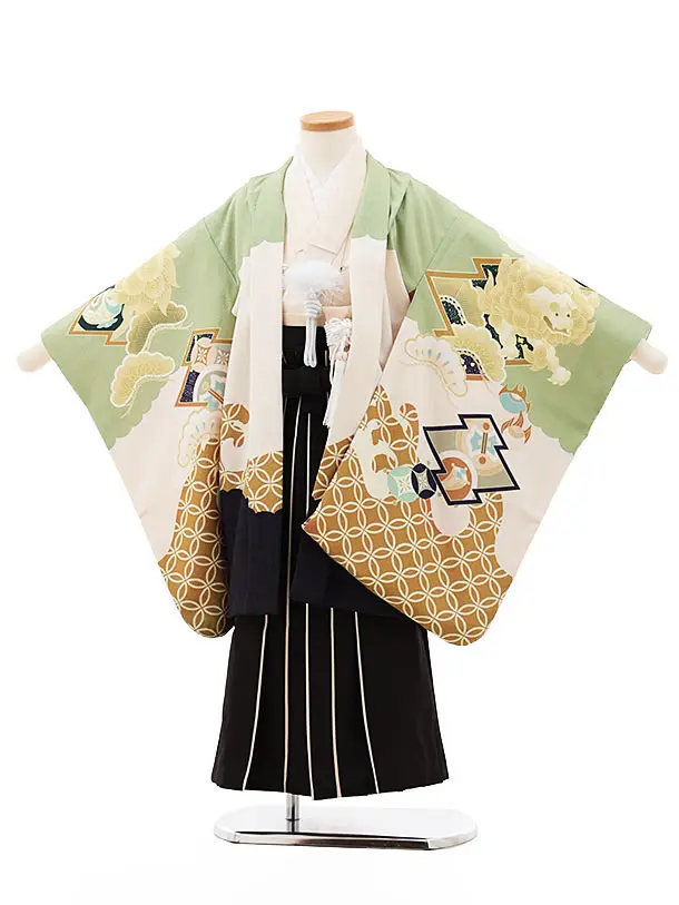 七五三(5歳男袴)X310 ヒワ色トラッド唐獅子×黒