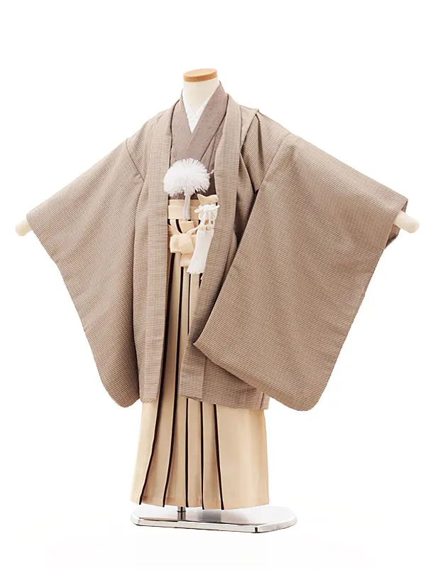 七五三(5歳男袴)X331 ベージュ千鳥格子×アイボリー茶
