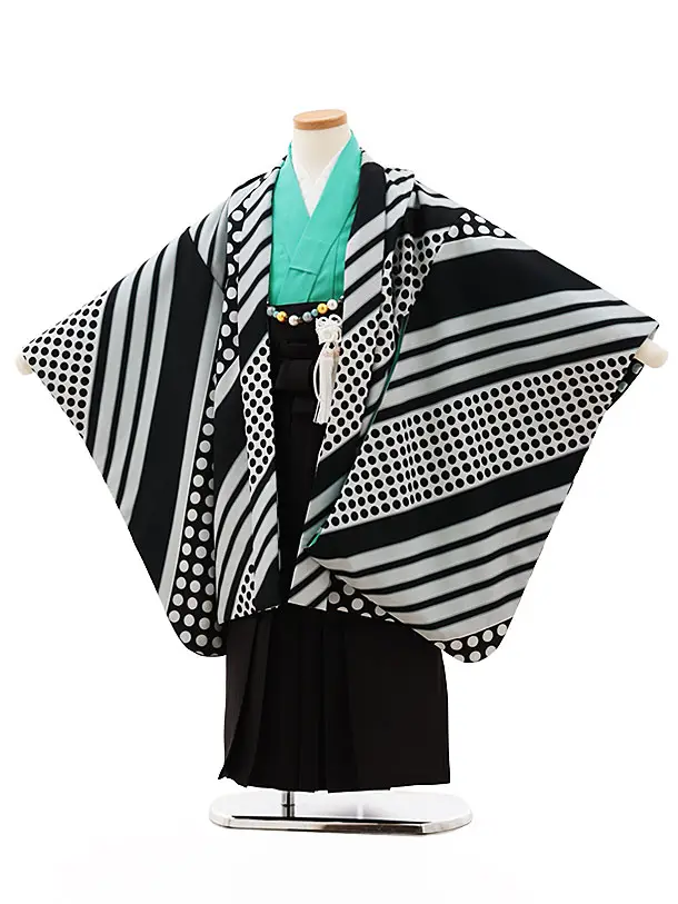 七五三(5歳男袴)X333 黒グレードットストライプ×黒