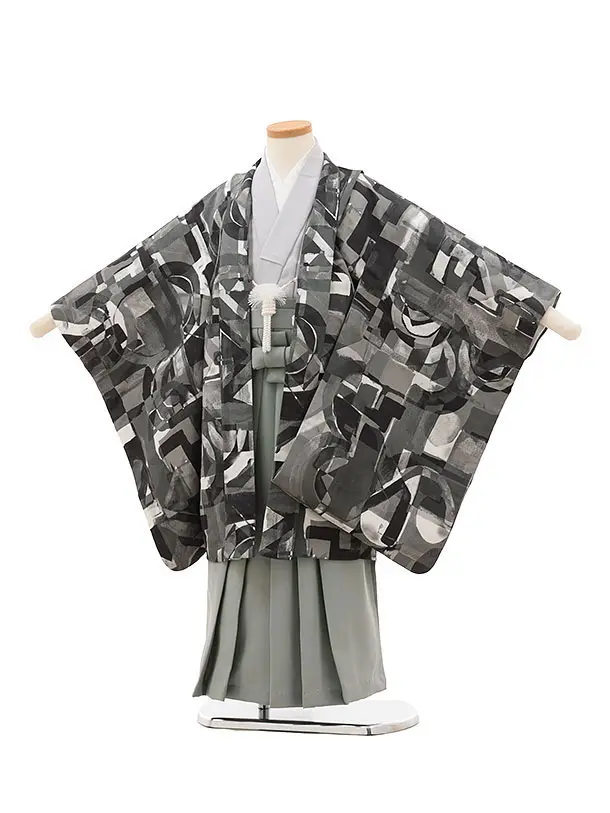 七五三レンタル(5歳男袴)X364 グレー水彩×グレー
