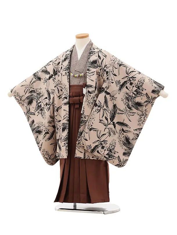 七五三レンタル(5歳男袴)X366 ベージュボタニカル×ブラウン袴