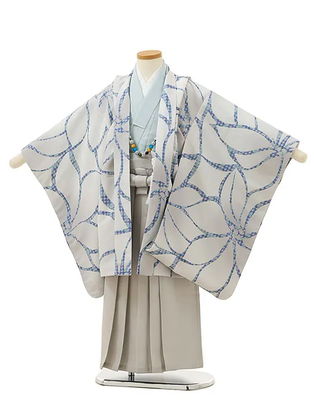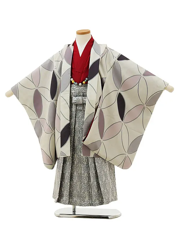 七五三レンタル(5歳男袴)X090アイボリー変わり柄×グレー袴