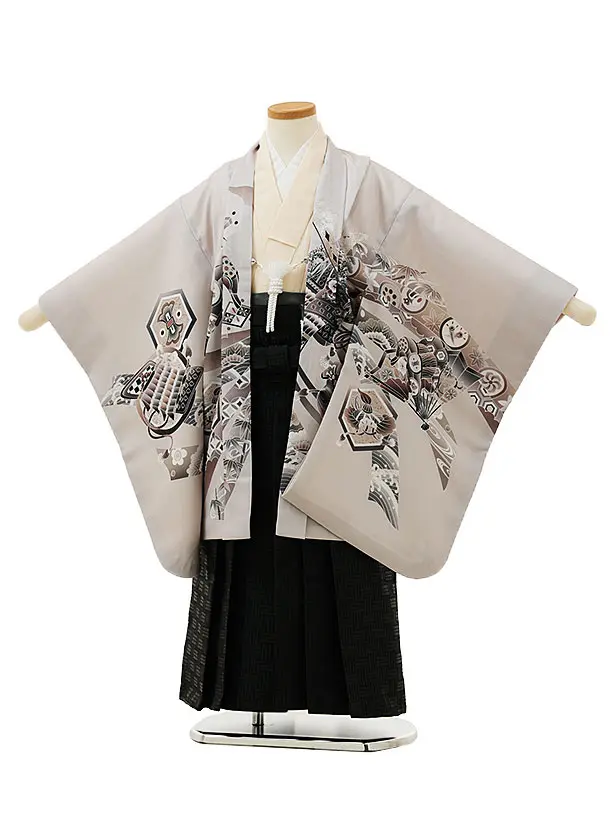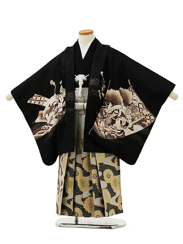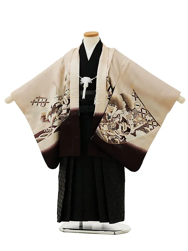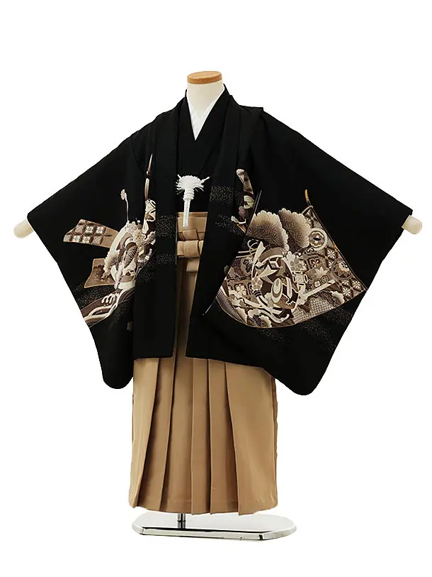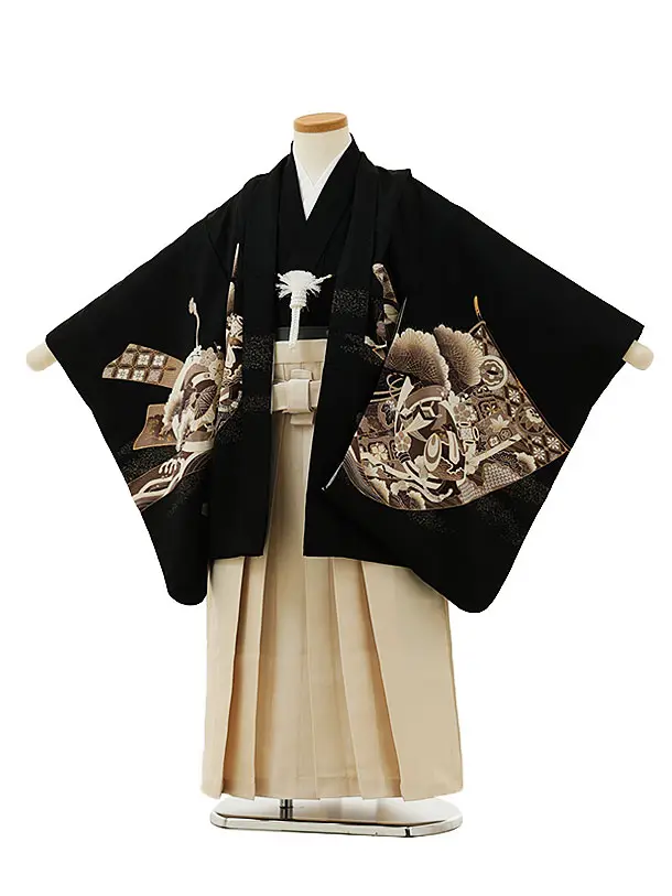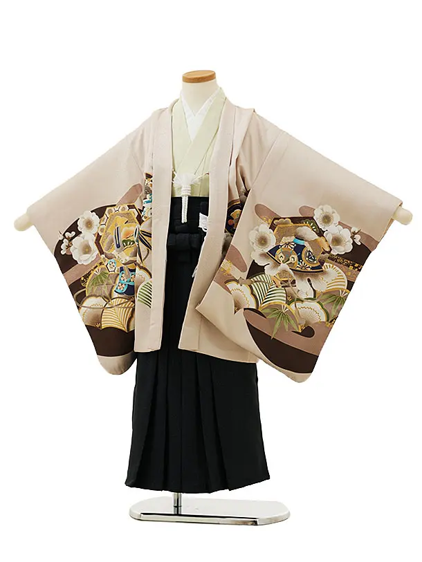 七五三レンタル(5歳男袴)X094グレージュ熨斗に兜×黒袴