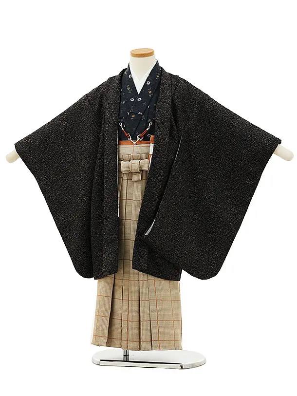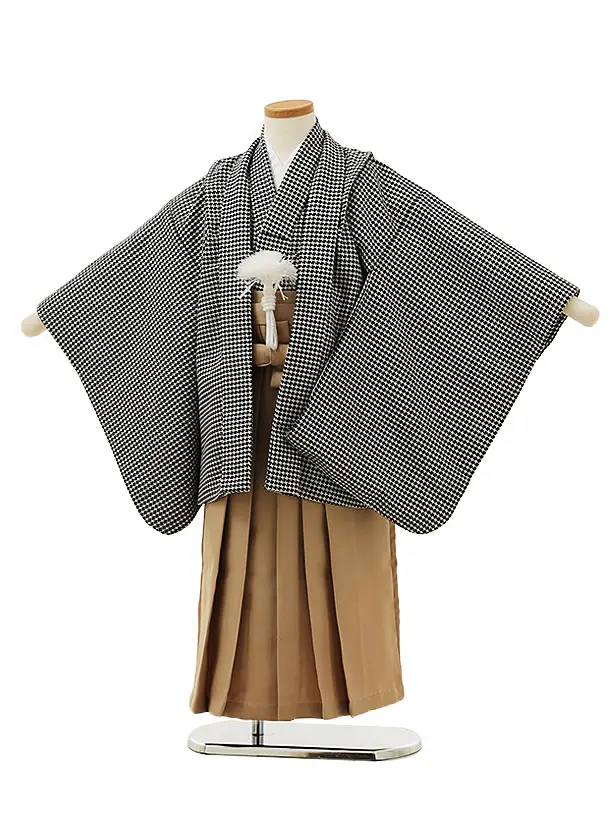 七五三レンタル(5歳男袴)X091黒白千鳥格子×ベージュ袴