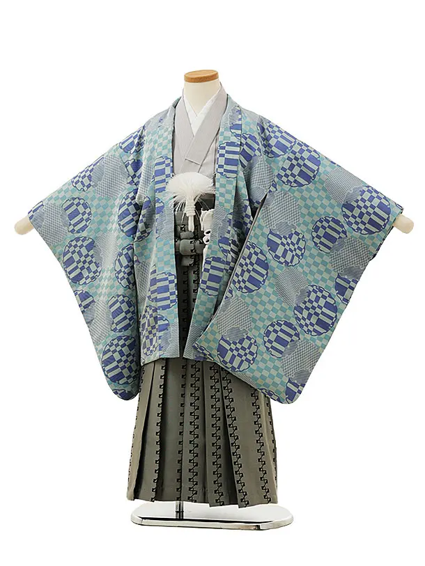 七五三レンタル(5歳男袴)X103グレーブルー雪輪×グレー袴