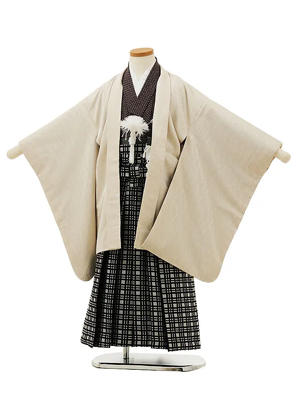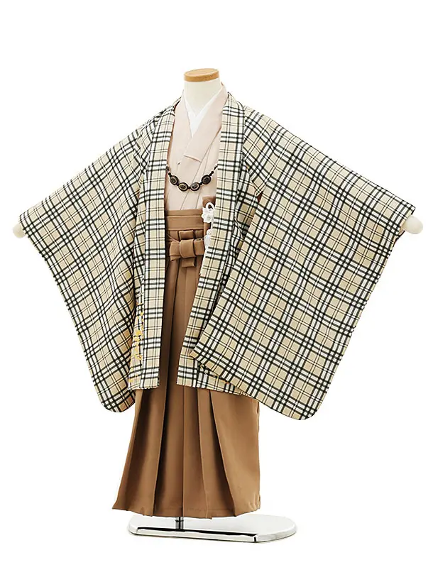 七五三レンタル(5歳男袴)X160ベージュチェックxベージュ袴