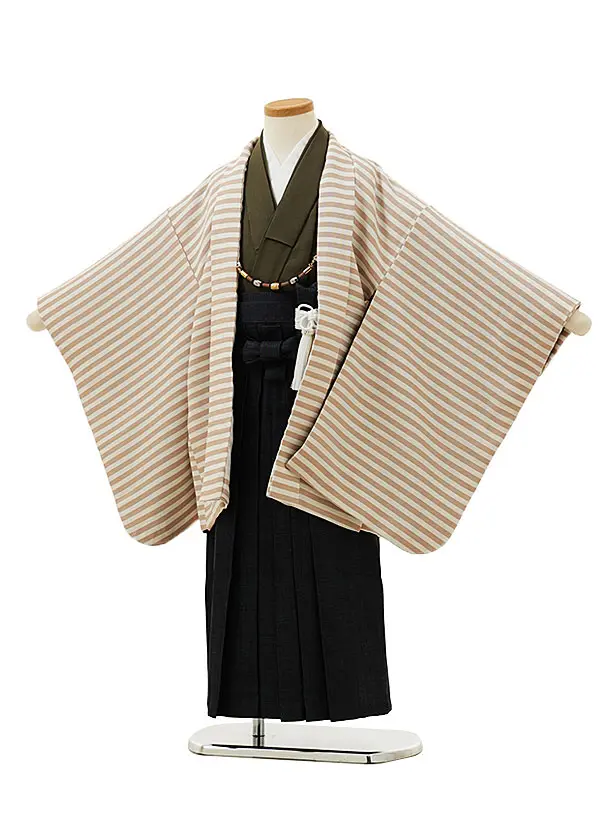 七五三レンタル(5歳男袴)X105ベージュストライプ×ネイビーデニム風袴