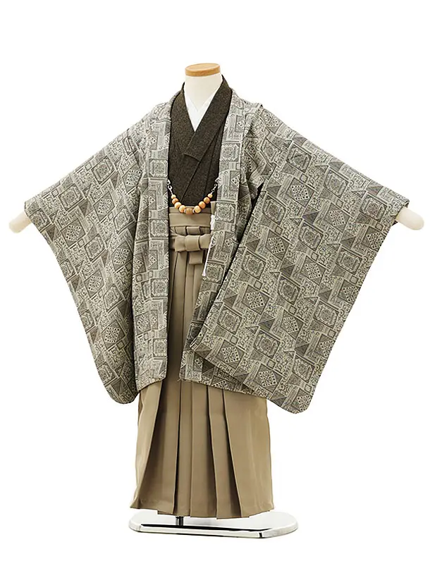 七五三レンタル(5歳男袴)X162グレージュ変わり柄xグレージュ袴