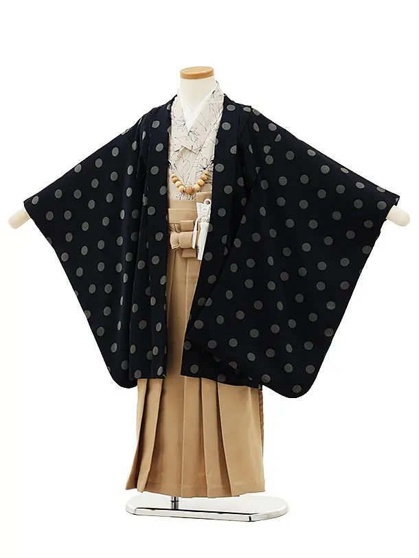 七五三レンタル(5歳男袴)X193キャメルベージュ変わりドットx黒袴