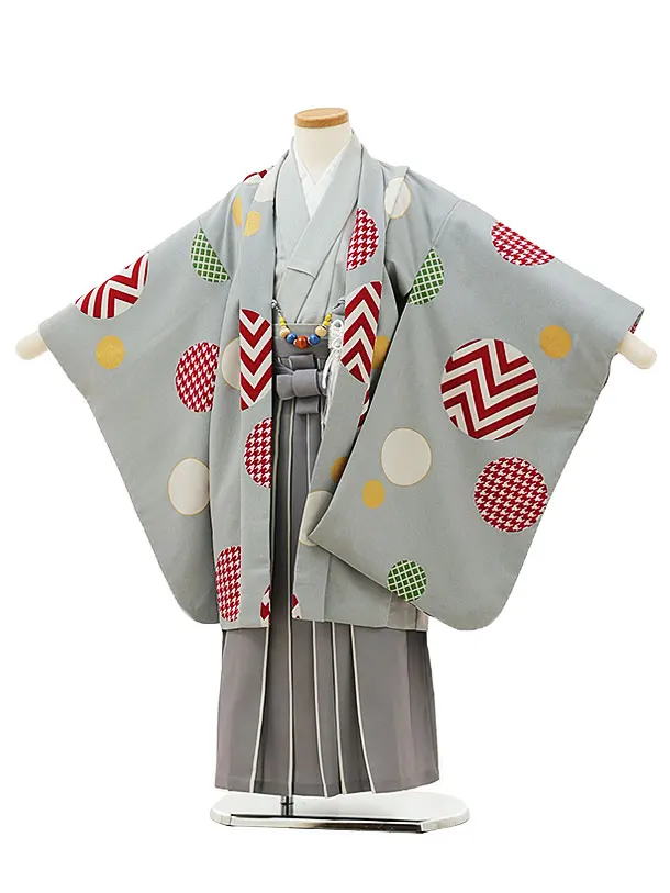 七五三レンタル(5歳男袴)X194グレー変わりドットxグレー袴