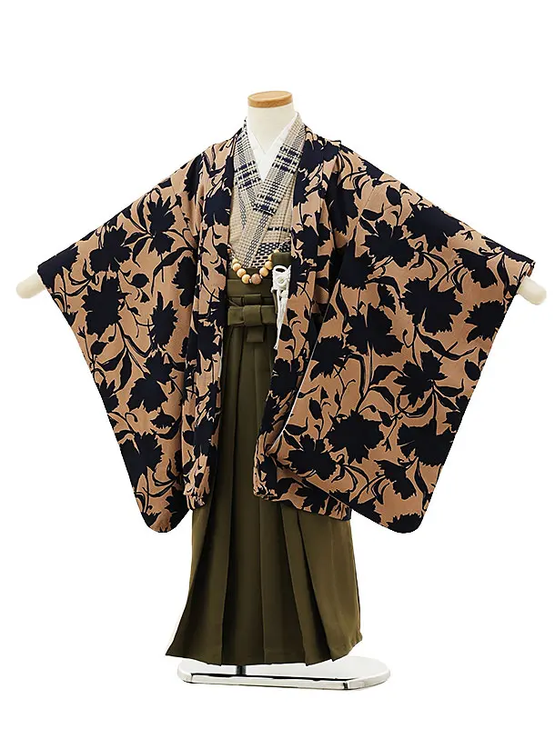 七五三レンタル(5歳男袴)X064紺大花xベージュ袴