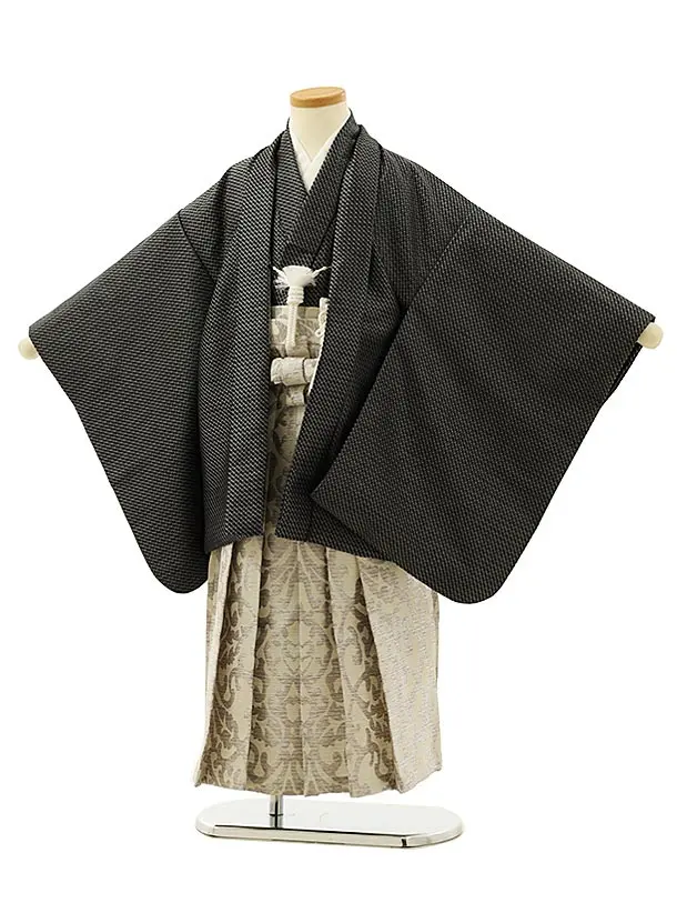 七五三(5歳男袴)5971ラフィネココグレージュ変わり柄×ベージュ袴