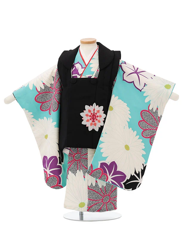 七五三レンタル(3歳女児被布)S157 黒×水色 菊