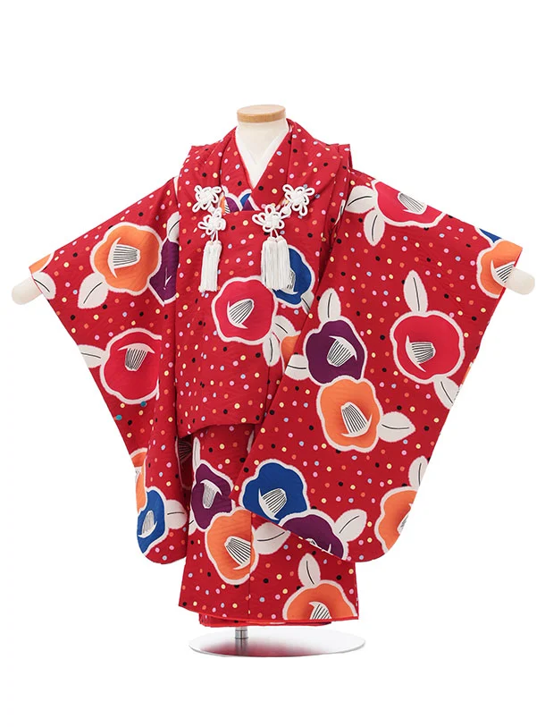 七五三レンタル(3歳女児被布)S169 赤ドット 椿