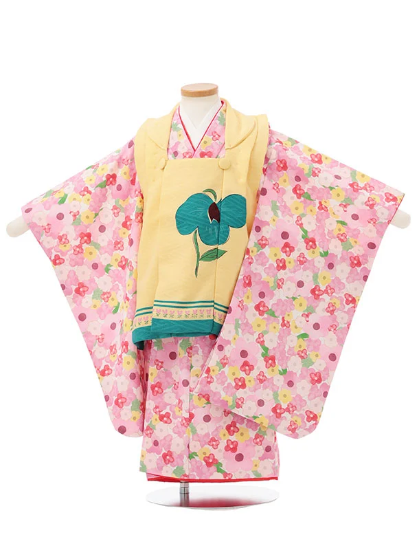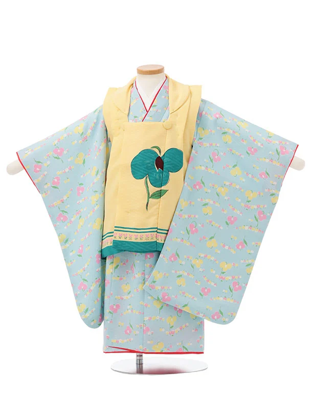 七五三レンタル(3歳女児被布)S174 うす黄色×水色 小花