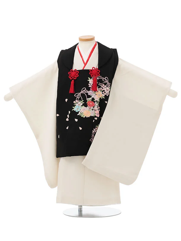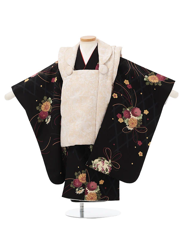 七五三レンタル(3歳女児被布)S180 白×黒地 菊