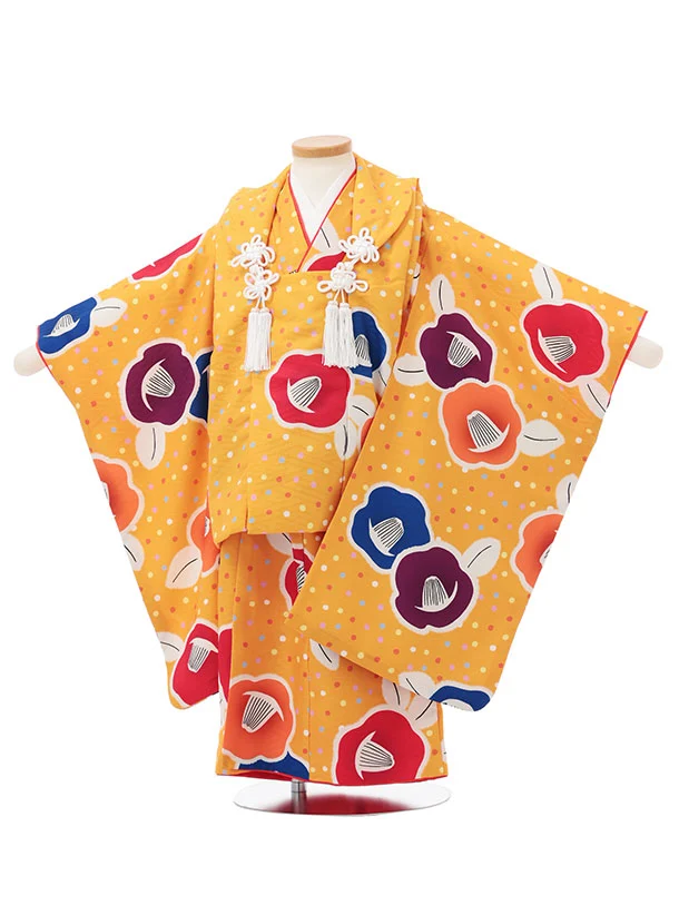 七五三レンタル(3歳女児被布)S178 やまぶき色 ドット 椿