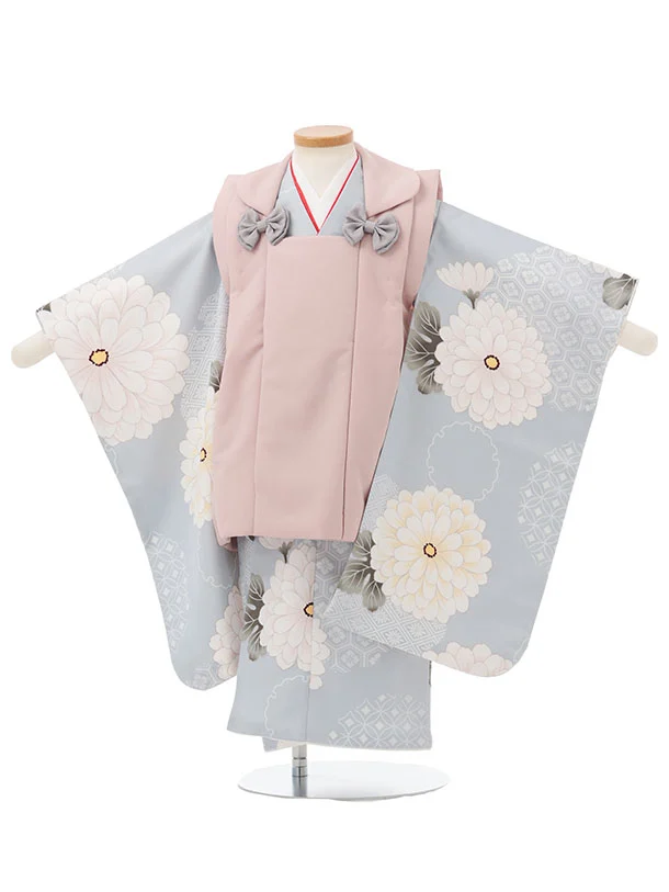 七五三レンタル(3歳女児被布)S189 くすみピンク×ブルーグレー 菊 花 亀甲