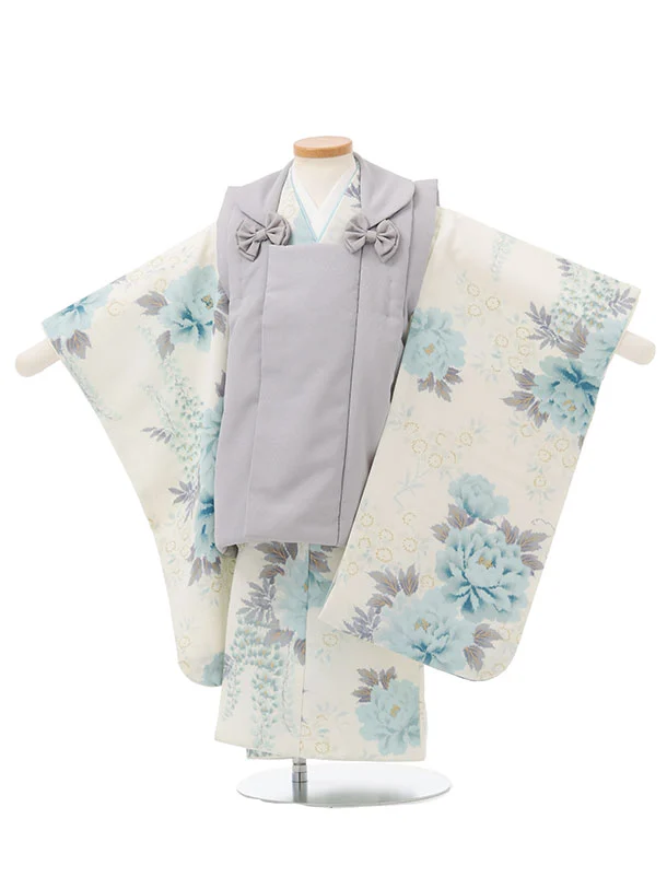 七五三レンタル(3歳女児被布)S191 グレー×オフホワイト 牡丹