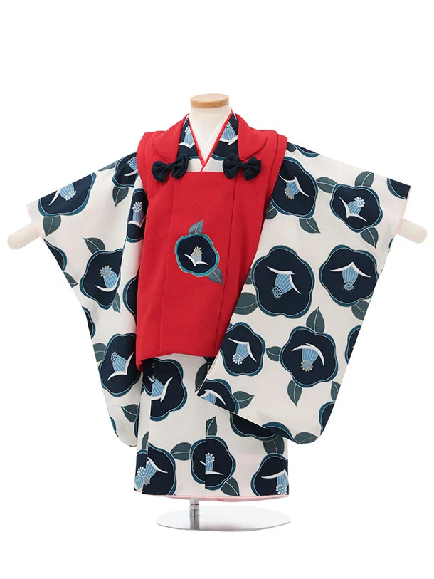 七五三レンタル(3歳女児被布)S193 赤刺繍 椿×白地 椿