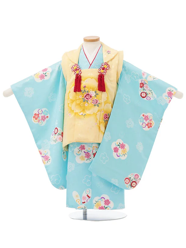 七五三レンタル(3歳女児被布)S196 うす黄色 桜×水色 梅花