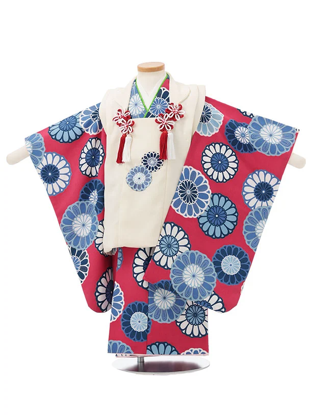 七五三レンタル(3歳女児被布)S197 オフホワイト×ボルドー 菊