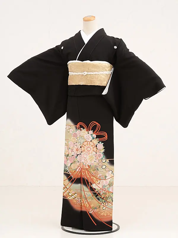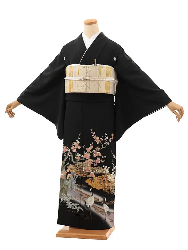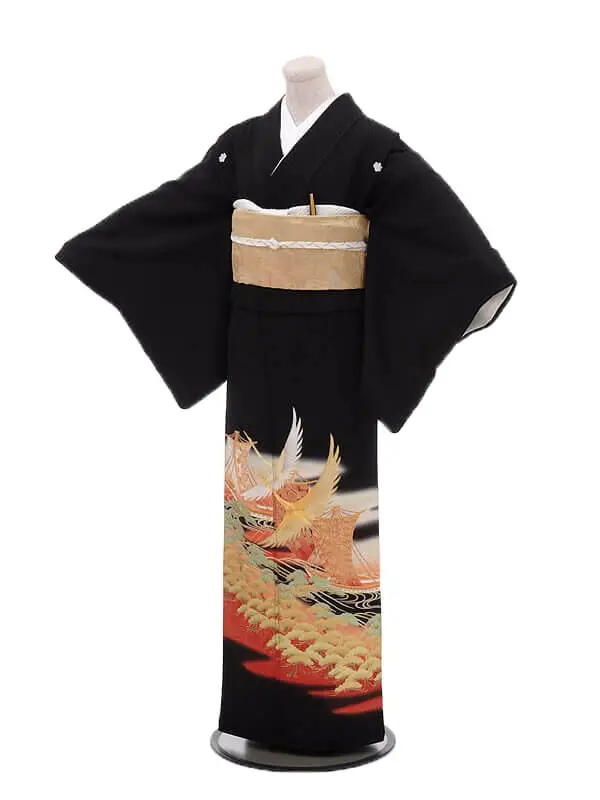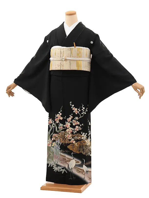 留袖 レンタル5425 刺繍 束ね熨斗に松鶴