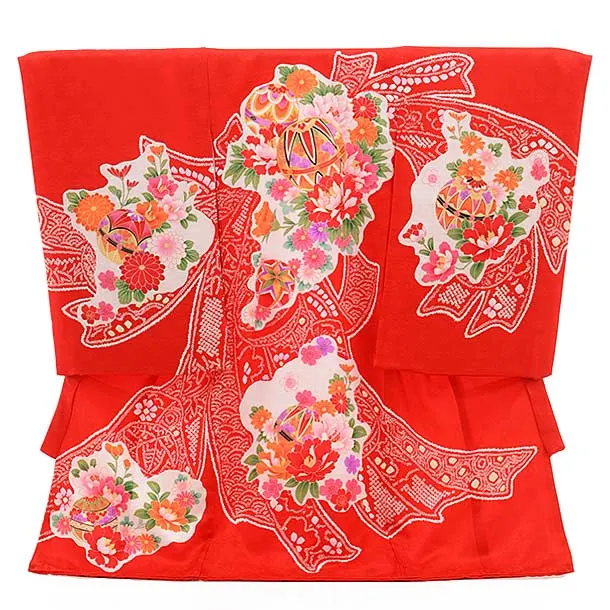 女児産着 お宮参り レンタル 正絹 1497 赤地 花と鞠