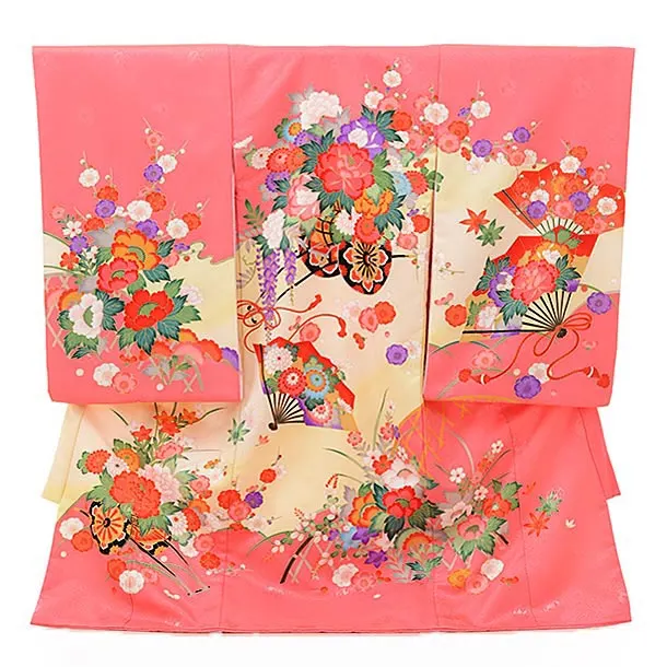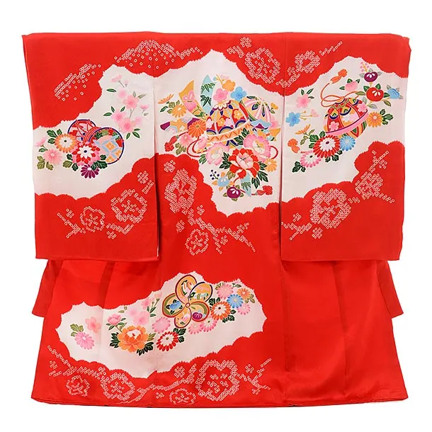 女児産着 お宮参り レンタル 1616 赤地ピンクぼかし桜まり