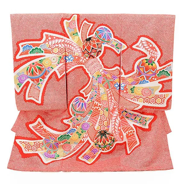 女児産着 お宮参り レンタル 1617 赤地疋田柄束ね熨斗にまり