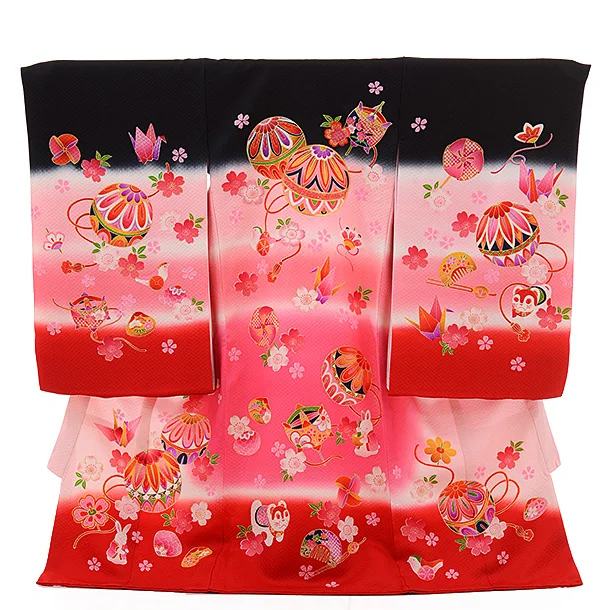 産着レンタル 女の子 お宮参り 正絹 1249 黒赤 ぼかし まり