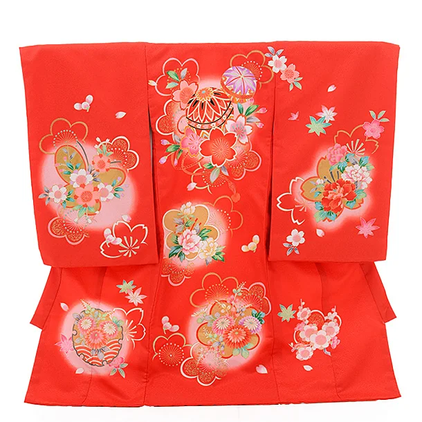 女児産着 お宮参り レンタル 1261 赤地 桜まり