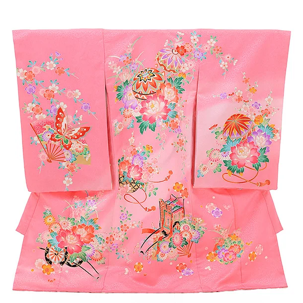 女児産着 お宮参り レンタル 1258 ピンク地 まりにぼたん