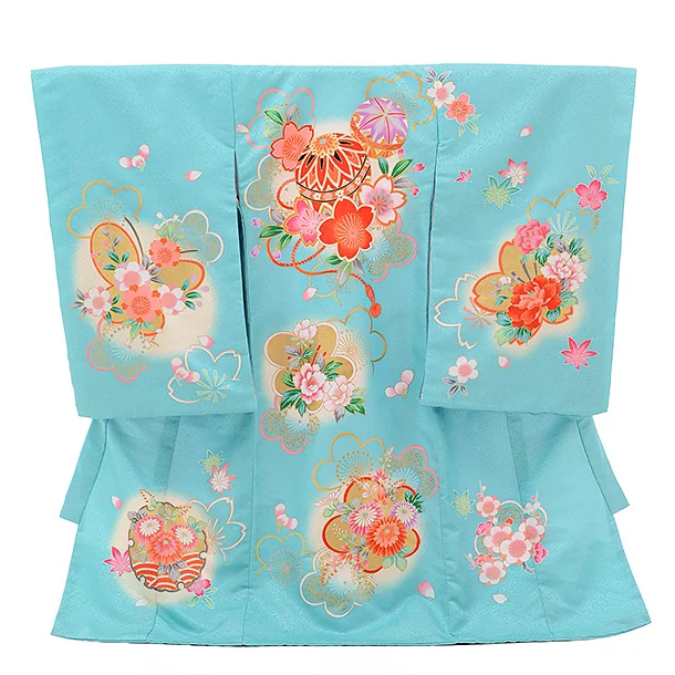 女児産着 お宮参り レンタル 1262 パステルブルーグリーン地 桜まり