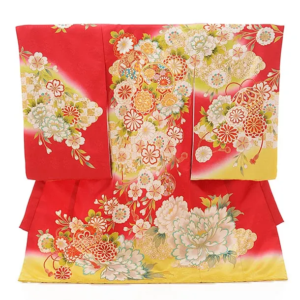 産着レンタル 女の子 お宮参り1248 赤地 ぼかし のしめ 鳳凰