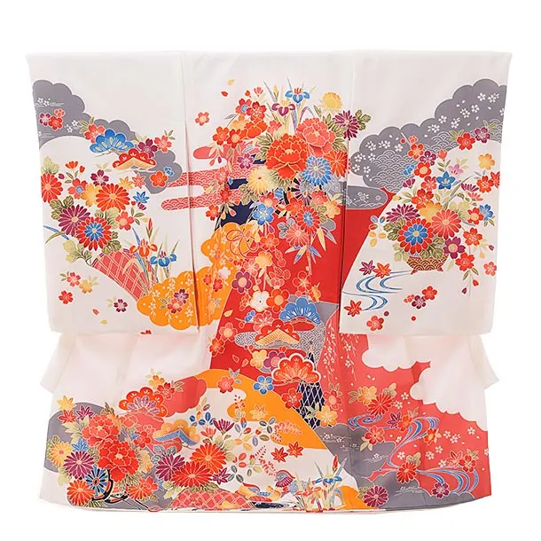 女児産着 お宮参りレンタル1779 【高級正絹】白地 雲取りに花と吉祥文様