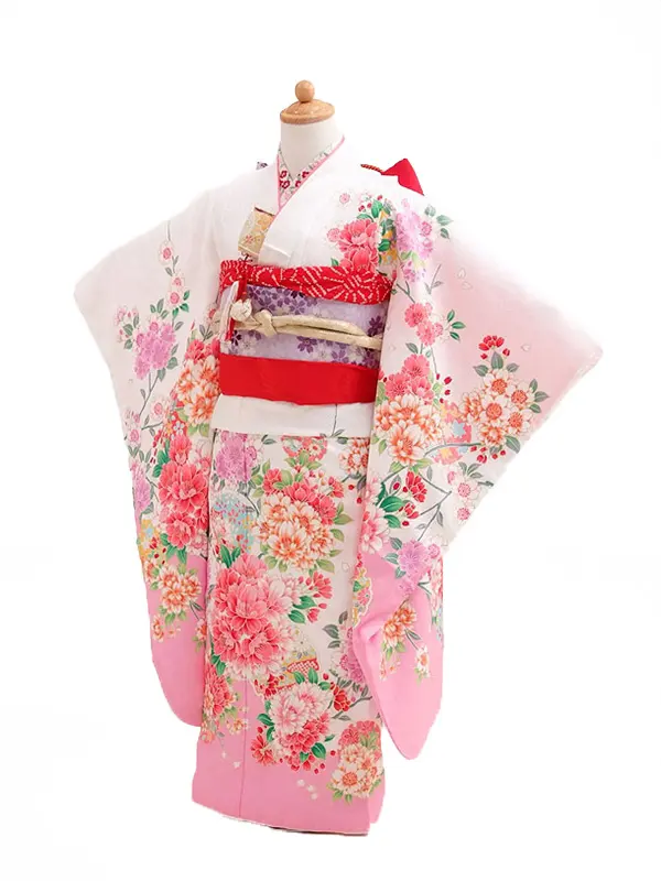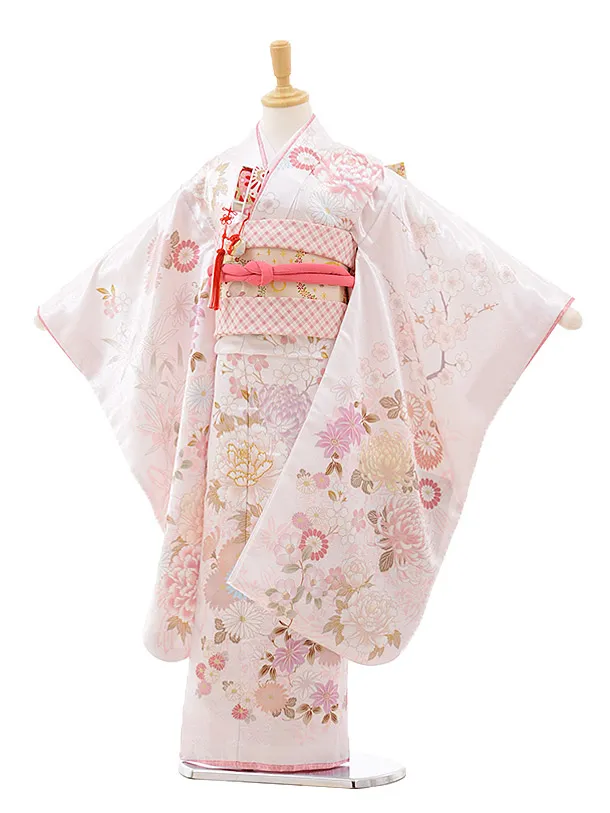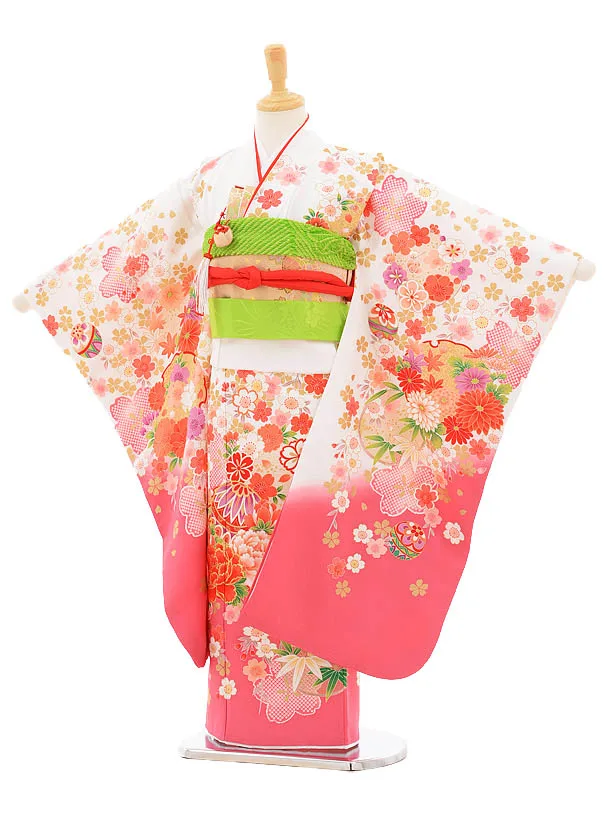 753レンタル(7歳女結び帯)0718白地裾ピンク牡