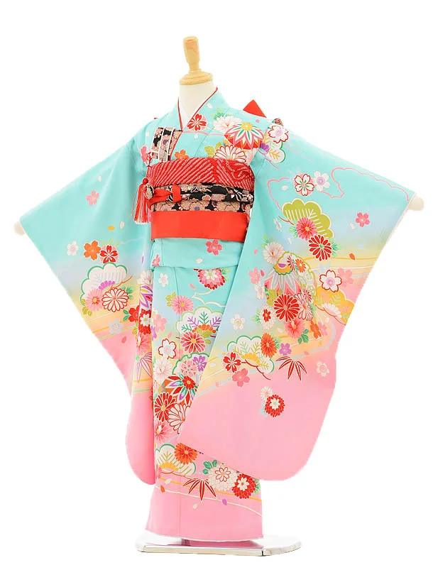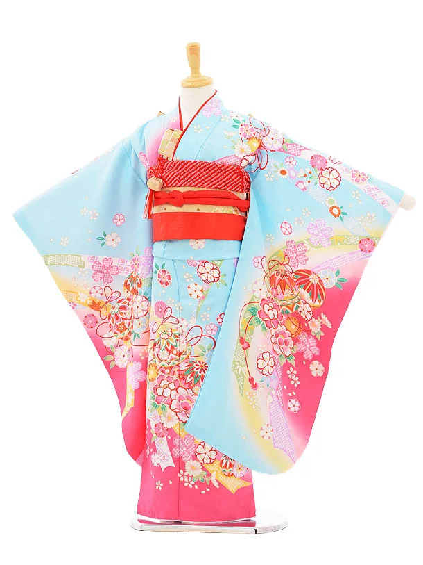 753レンタル(7歳女結び帯)7124 水色ピンクぼかし まり