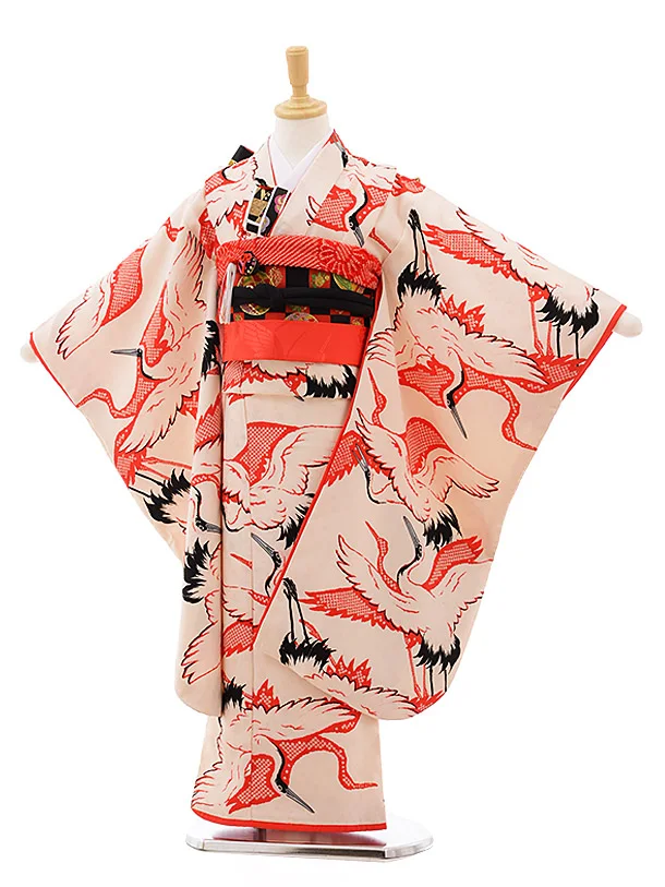 七五三レンタル(7歳女の子結び帯)7642 モダンアンテナ クリーム鶴