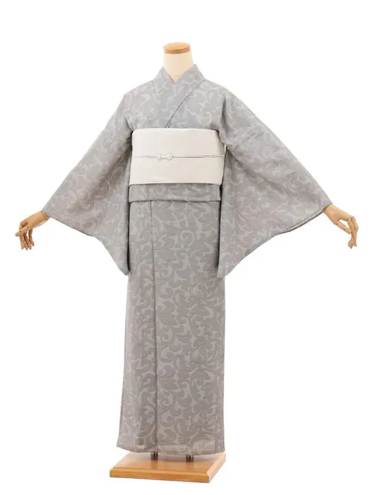 浴衣0044 【東レ セオα】ジャパンモード 唐草更紗 パールグレー