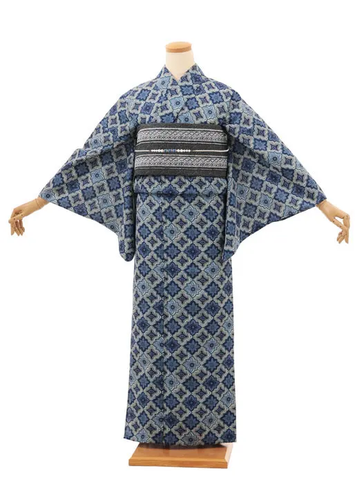 浴衣0046 【東レ セオα】ジャパンモード 幾何学更紗 アイスブルー