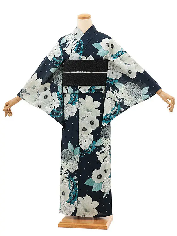 浴衣0061 【東レ セオα】フルッタロッサ×和風館エディブルフラワーネイビー