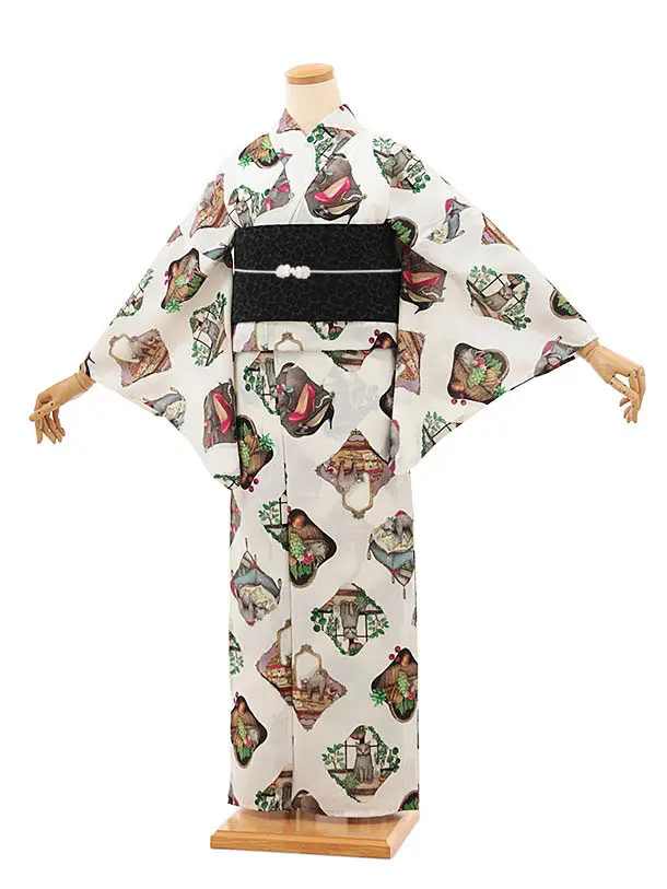 浴衣0060 【東レ セオα】フルッタロッサ×和風館エディブルフラワーオフ白
