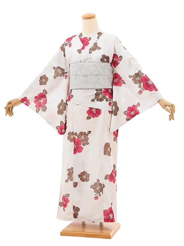 浴衣0064 華徒然 2WAYゆかた 椿 ベージュ