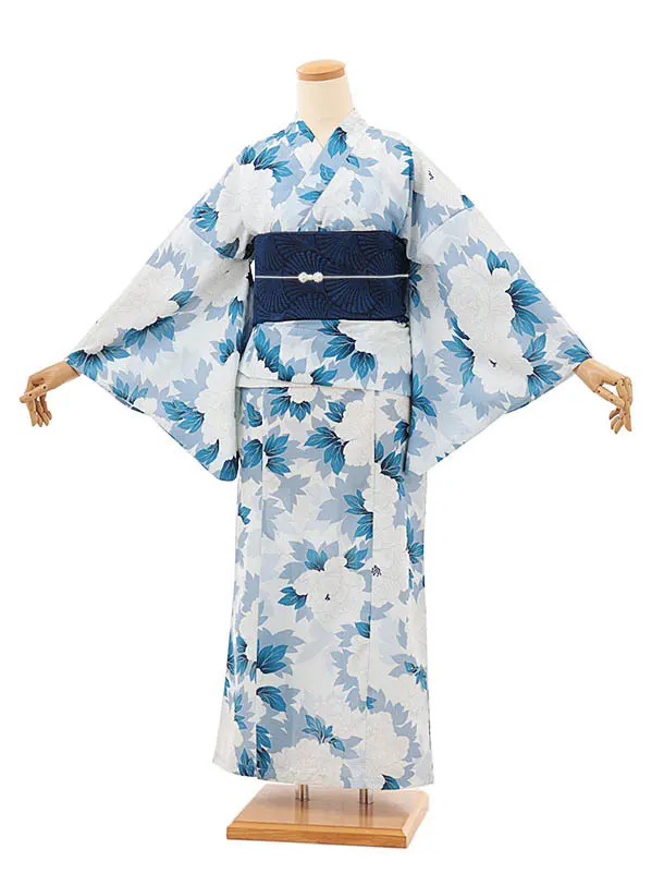 浴衣0065 華徒然 2WAYゆかた 牡丹 ブルー