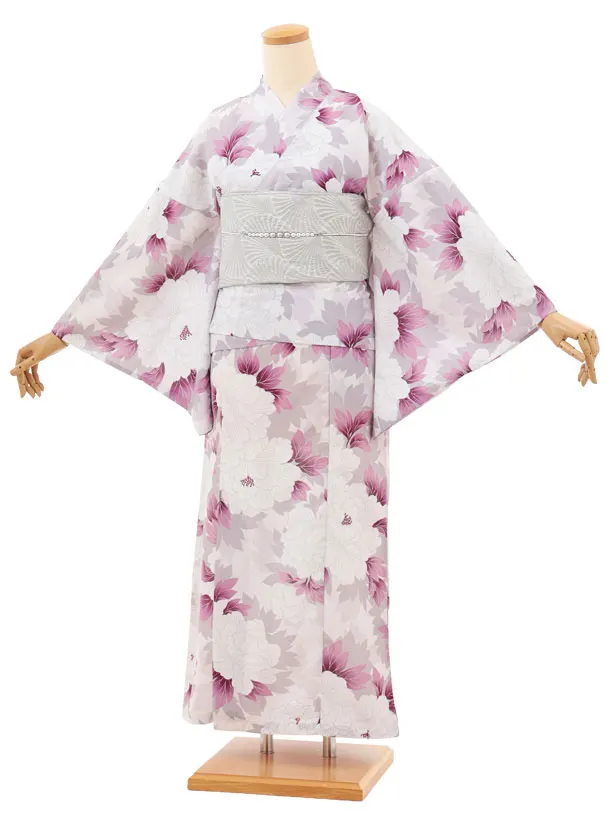 浴衣0066 華徒然 2WAYゆかた 牡丹 パープル
