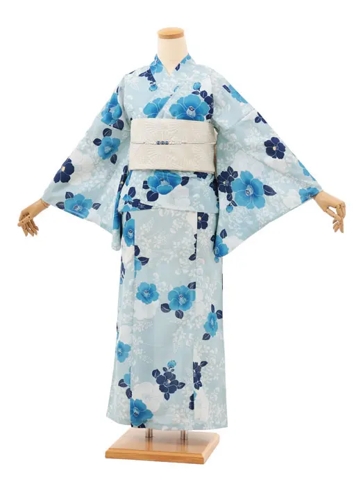 浴衣0074 華徒然 2WAYゆかた 椿 水色