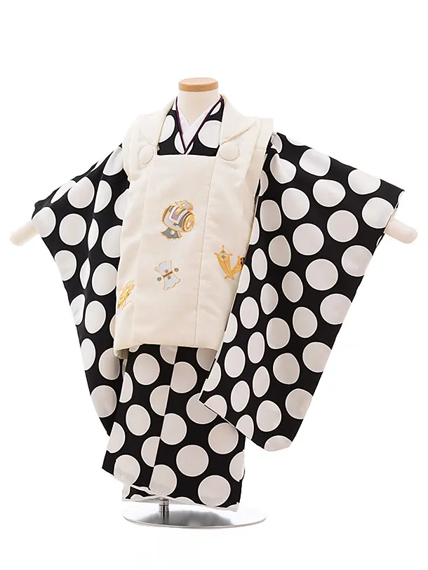 七五三レンタル(2.3歳男児被布)2357 クリームラメ×黒白ドット