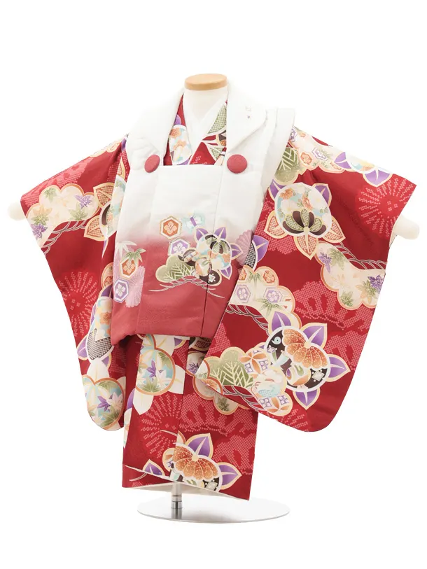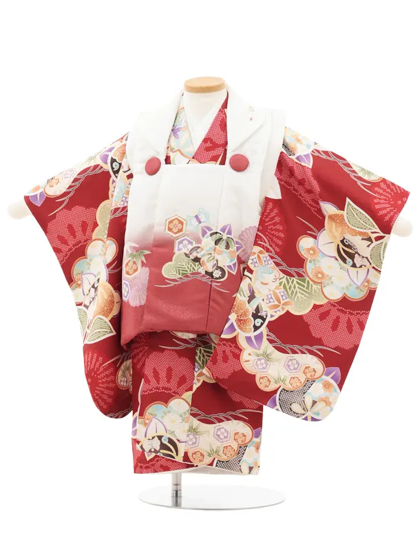 七五三レンタル(2歳男児被布)O243 オフ白赤ぼかし×赤 松橘